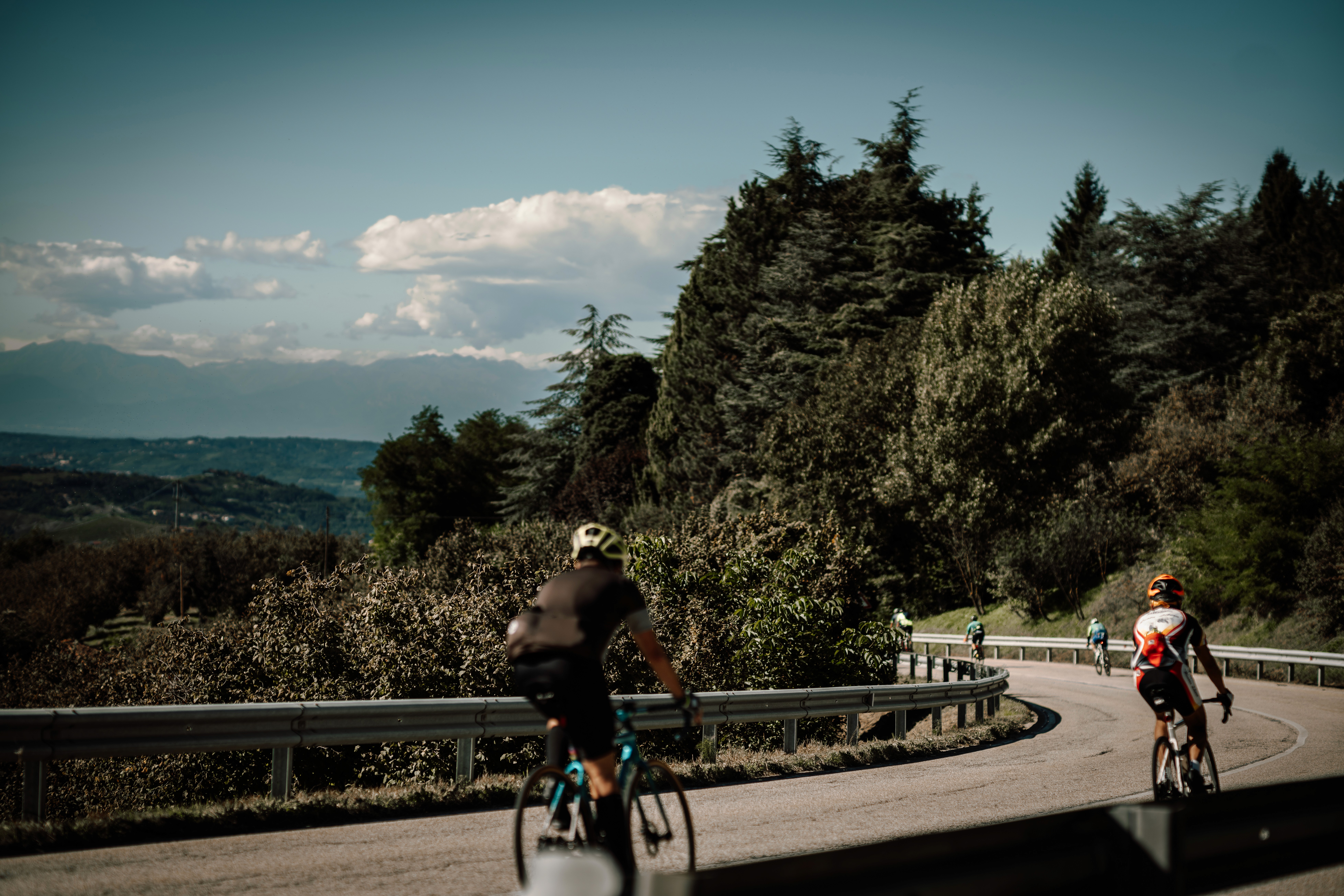 Að hjóla um Langhe er algjör draumur. Vínekrur svo langt sem augað eygir, litlir miðaldabæir sem blasa við á toppum hæðanna og í fjarska gnæfa Alpafjöllin.
